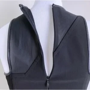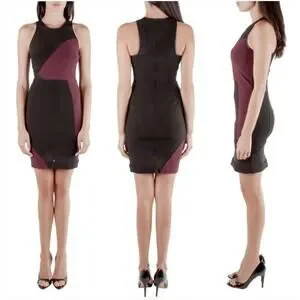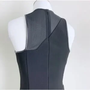 Details: Bodycon, Mesh Panels/Cut-Outs, Faux Leather Trim around neck line & arm holes, Hidden back zipper with hook & eye closure.