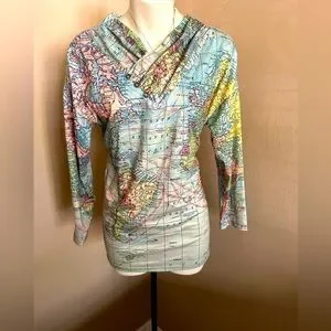 Noracora long sleeve jersey top with world global map.