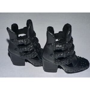 Modern Barbie Black Open Toe Cut Out Ankle Boots Heels Shoes Mattel