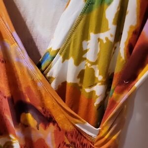 This CAbi blouse features a beautiful watercolor floral pattern with a crossover neckline and 3/4 sleeves. The ruched accents and stretch material make it a comfortable and stylish choice for any casual occasion. The blouse is made of rayon/spandex and comes in a size small. Its sleeves are 3/4 and it has a Multicolor pattern. The blouse is perfect for any woman who wants to look stylish and comfortable at the same time.