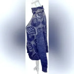 Folk by Hansel from Basel, Anthropologie, mohair-blend mock turtle pullover, flower design, very very cute! Warm and cuddly! Folk by Hansel from Basel cut out mohair sweater, S.