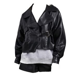 D&M Slouchy Moto Jacket Women Size Small OVERSIZED fits up to a 1X Vegan Leather