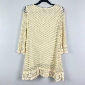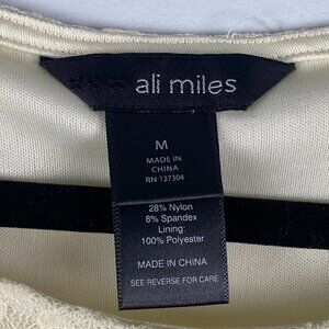 Ali Miles Cream Lace Tunic Top Ivory Size Medium 3/4 Sleeves Sheer