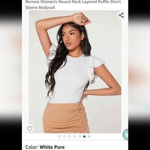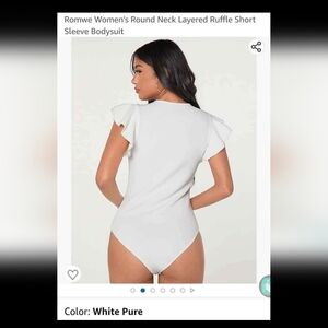 Brand New Romwe, Elegant white, round Neck bodysuit with layered ruffle short sleeves. Perfect for any occasion.