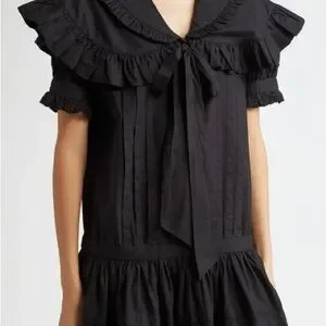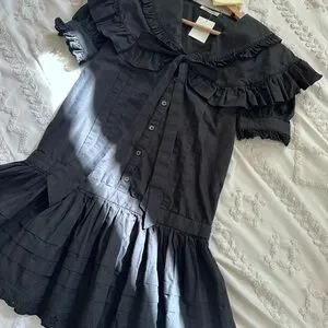 Sandy Liang Elegant Black Ruffled Dress with bow