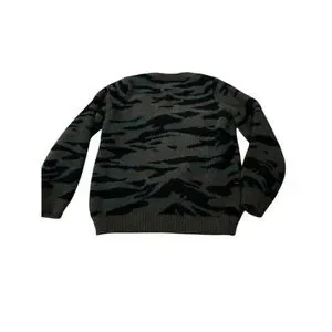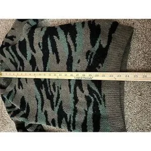 This Barefoot Dreams women's pullover sweater is a size XS and features a relaxed fit. Made from 100% polyester, it showcases a green camouflage pattern and is crafted with CozyChic knit for added comfort. The sweater is machine washable and manufactured in China. It is pre-owned.