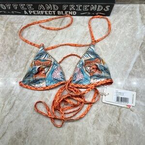 Take your seaside look to the next level with this Agua Bendita bikini top, which features a bold wraparound design and a unique print.
