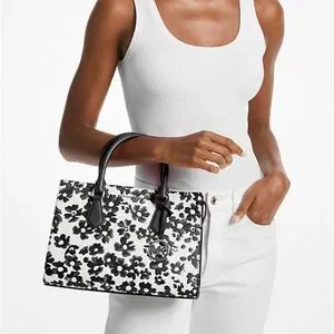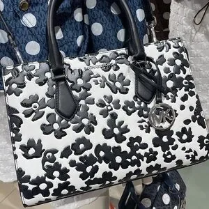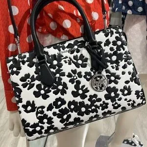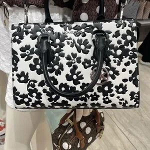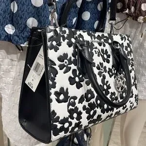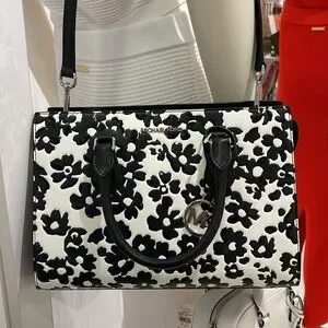 Elevate your style with the Michael Kors Black and White Floral Handbag. This chic accessory features a striking floral pattern, perfect for any occasion.