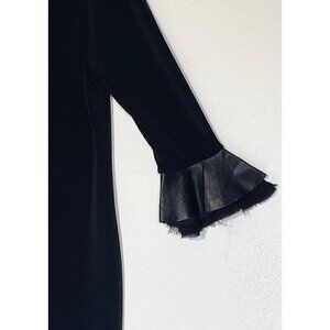 Alice + Olivia Black Faux Leather Trim 3/4 Ruffle Sleeve Midi Dress