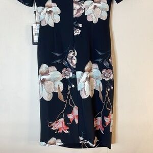NWT. Adrianna Papell 2 Pleat Detail Printed Sheath Dress.
