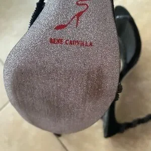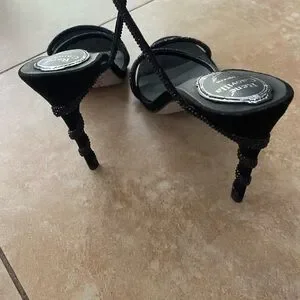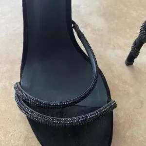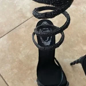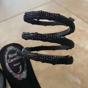 Excellent pre-owned condition René Caovilla black crystal wrap Margot stiletto heels. These have only been worn once, as you may be able to tell from the glitter bottoms. I do not have the box. Original price $1700