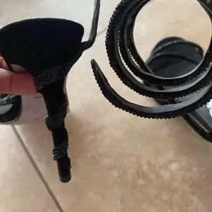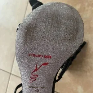 Rene Caovilla Black Crystal Margot Snake Wrap Heels EU Size 40 US Size 9