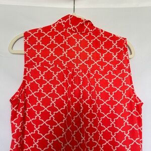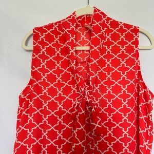 Stunning coral color on this great sleeveless blouse. Functional tie in the front, serves no real purpose other than an added detail! EUC - excellent used condition, no call outs.