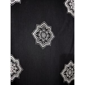 Cozy , relax top in black with white Hawaiian print detail . Soft, smooth, non sheer material in 100% rayon