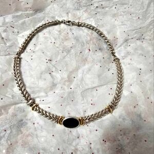 Sterling silver and 14K Gold with a beautiful Black Onyx center stone.