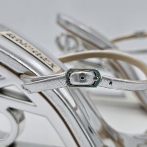 These mules are designed to steal the show with their supple leather upper and sculpted metallic wedge heel. They're seamlessly held in place by snug straps, complete with a stylish buckle that you can adjust for the perfect fit.