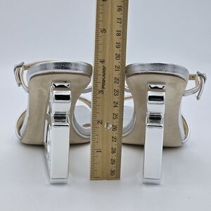 Badgley Mischka Luna Mule With Sculptural Wedge, Silver "LOVE" Heels, Like New!