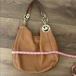 Elevate your style with this Michael Kors tan leather shoulder bag. Perfect for any occasion, this bag combines elegance and functionality. No damage or flaws