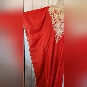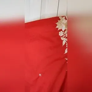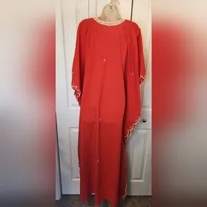 Vintage large 1970s Red Floral White Embroidered Kaftan Long Maxi BohoElegant red kaftan with intricate floral embroidery. Perfect for a stylish look.