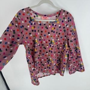 Doops. Australia Pink Polka Dot Multicolor Print Flowy Top Size Large