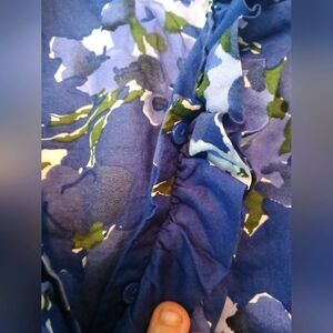 Ann Taylor LOFT Indigo Floral Feminine Ruffle Button-Down Spring Blouse Top M