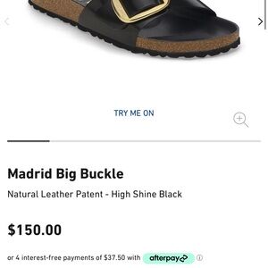 Experience the perfect blend of style and comfort with Birkenstock's black sandals, featuring a striking gold buckle. These open-toe sandals boast a smooth, leather-like material and a contoured footbed for all-day support.