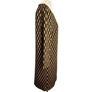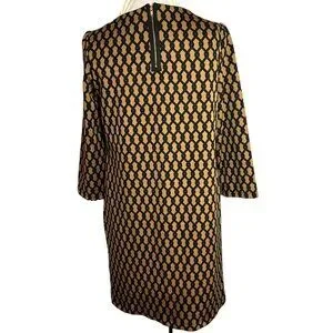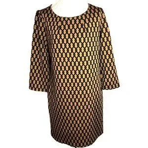 Vivienne Tam Geometric Print Black & Tan Dress With 3/4 Sleeves Size 10 Vintage