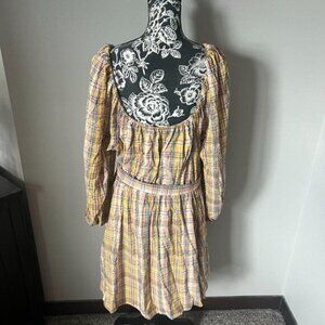 Tanya Taylor Women's Yellow Plaid Self-Tie Xena A-Line Dress Size 22 NWT