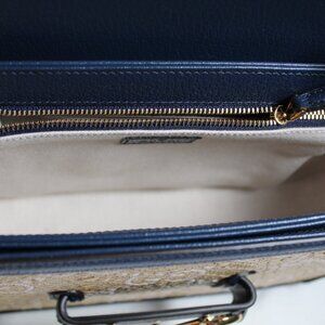 NEW Gucci GG Jumbo Horsebit 1955 Flap Shoulder Bag Raffia Navy Leather 602204