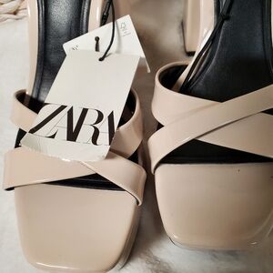 Zara Platform Nude Block Chunky Platform Sandals NWT Size 6.5 Strappy Beige