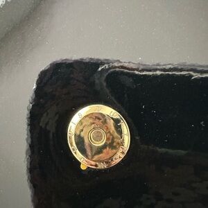 This luxurious Louis Vuitton Clutch features a sleek black design, crafted from high-quality leather with a smooth, glossy finish. The standout feature is the iconic LV monogram in metallic gold, adding a touch of elegance and sophistication. Perfect for those who appreciate timeless style.