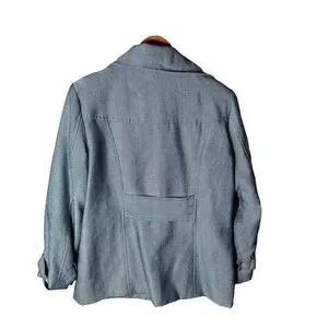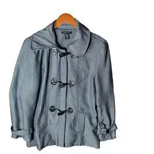 Hi Wondering what the actual color of this jacket is. Is it blue or Grey? and the grey and white stripes in the picture wuith the label, is that just on the inside? Thank you