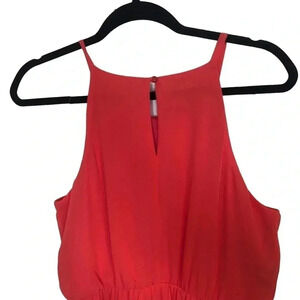 Gorgeous vibrant coral/dark orange color. Asymmetrical ruffle trim detail. Elastic waistband. Lightweight flowy fabric. Perfect condition! Smoke free home.