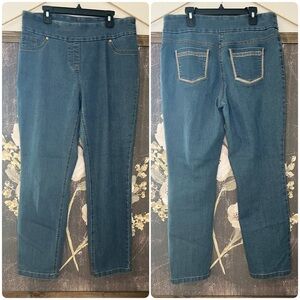 Westbound Medium Wash Blue Pull On Rhinestone Pocket Stretch Jeans Sz 10 Short