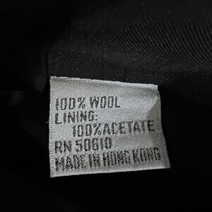 Mainly open wool jacket with a large bow that snaps closed at the neckline. The bow and the placket are comprised of beautiful unusual dimensional rhinestone studs. Lightly padded shoulders. Made in Hong Kong.