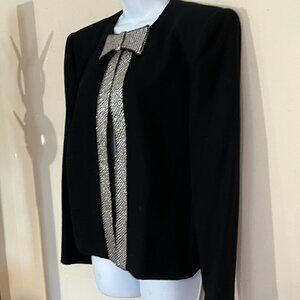 Nolan Miller Vtg Rhinestone Bow Placket Black Wool Evening Jacket Vtg 90s sz 12