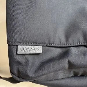 Black Away Backpack. This is one of the originals, which they don't sell anymore. It has various inner pockets, a side pocket for a water bottle, and a handy strap on the back so you can slide it over a suitcase for easier carrying.