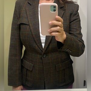 Ralph Lauren Brown Plaid Lambs Wool Blazer