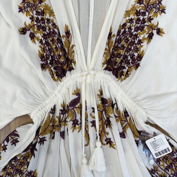 Float from beach to boardwalk in the Free People White Embroidered Swim Cover-Up. Light, airy, and beautifully detailed, this piece features delicate embroidery and a flattering tie waist for that effortlessly boho-chic look.