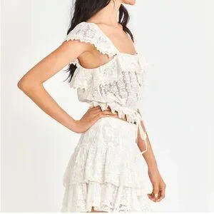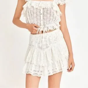 LoveShackFancy White Lace Ruffle skirt