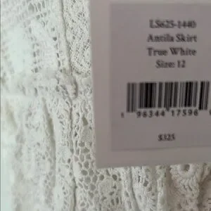 White to ivory ruffle crochet style ruffle skirt .Fully lined and side zipper closure