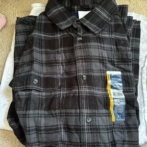 Upgrade your wardrobe with this stylish black and gray plaid shirt. Perfect for any occasion, this shirt offers both comfort and style.