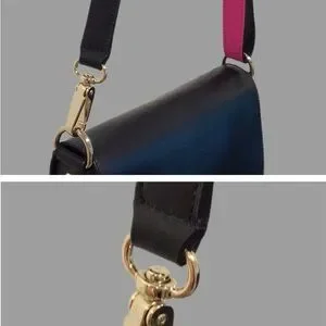 EUC - stunning black and hot pink leather crossbody/shoulder bag. Front flap has a magnetic closure with a pink and gold logo (sone tiny scratches - not noticeable). Spacious interior with a large zip pocket and two slip pockets. Strap is detachable - 21” drop for crossbody and 17” for shoulder option. Gold tone hardware. Smoke-free home.