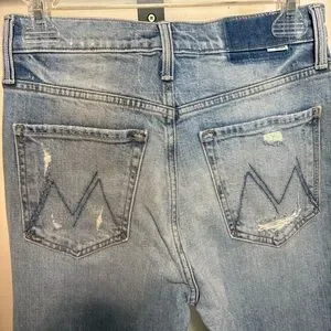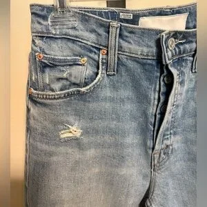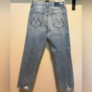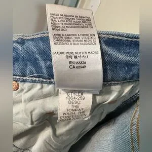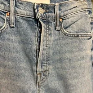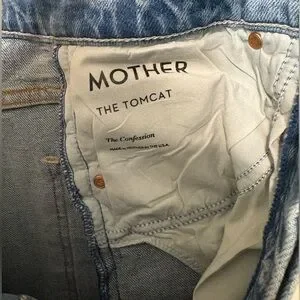Size 26 Tomcat jeans in The Confession wash. They’re in great condition with intentional fraying at the knees, etc