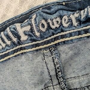 These Wallflower jeans feature a classic blue hue with a stylish ankle-cropped design, perfect for a modern look. The jeans showcase intricate embroidered details on the back, adding a touch of elegance to your outfit. Ideal for casual outings, these jeans offer both comfort and style.
