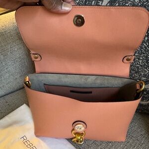 This Rebecca Minkoff leather Blythe has beautiful floral appliqués and little gold studs perfect for spring or summer, fancy dates, brunches or anytime you’d like to add that little extra something to your look. So eye catching you’ll get lots of compliments. It has a top handle, detachable and adjustable shoulder strap, a magnetic snap flap and clasp closure, unlined, 1