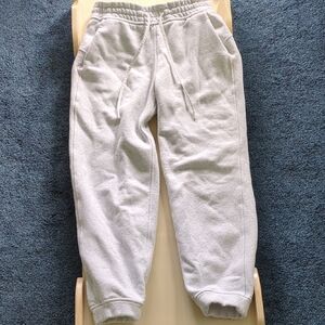 Size 2 comfortable jogger sweatpants. Worn a few times the winter I got them. Great for around the house or running errands. The form fit and high rise elevate the joggers for out and about.