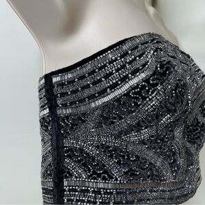 UO Kimchi Blue Black Velvet SilverEmbroidered Beaded Bandeau Top sz S. Excellent condition, no loose beads. Size S Beaded velvet back zipper closure Fits like a B cup Anti slip.