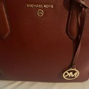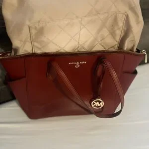 Authentic Michael Kors multipocketed tote bag, Crafted in a rich orange-red color with CLEAN interior, in like new condition! No scratches or rips. Ask about size. Very roomy on the inside with pockets for cellular devices and sunglasses. $45 FIRM.