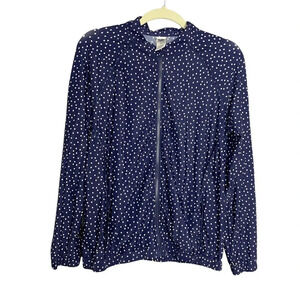Tommy Bahama Navy Blue White Polka Dot Front Zipper Island Active Swim Beach Cover up Jacket Size Medium